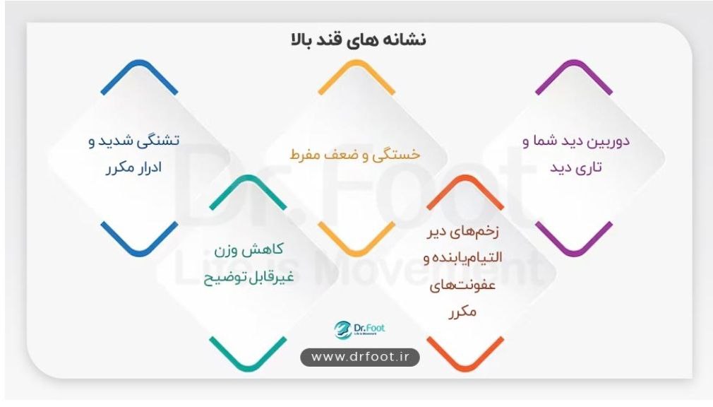 اگر هر یک از این نشانه های قند بالا را تجربه میکنید، باید فوراً اقدامات لازم را برای کنترل قند خون خود انجام دهید. تشخیص به موقع و کنترل صحیح قند خون میتواند از بروز عوارض جدی جلوگیری کند و کیفیت زندگی شما را بهبود بخشد. البته همیشه بهتر است که در صورت مشاهده علائم قند خون بالا، با پزشک خود مشورت کنید تا راهکارهای مؤثر برای کنترل قند خون خود را دریافت کنید. قند بالا نباید نادیده گرفته شود، زیرا در درازمدت میتواند مشکلات جدی برای سلامتی ایجاد کند.