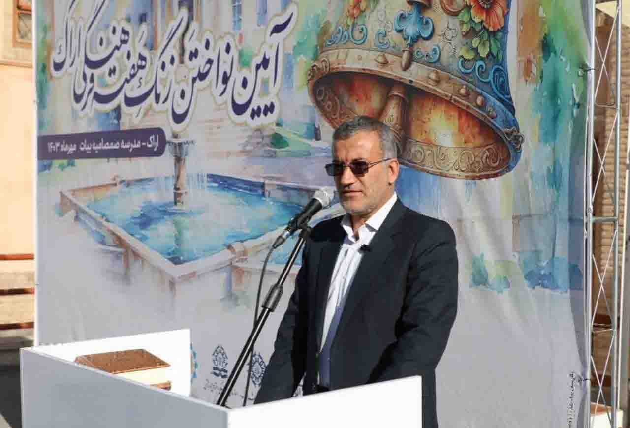 شهردار اراک در آیین نواختن زنگ هفته فرهنگی اراک در مدرسه صمصامیه بیات در سالروز صدارت میرزا تقی خان امیرکبیر، ضمن تبریک و گرامیداشت این هفته، گفت: برنامه‌های هفته اراک با نواختن زنگ در این مدرسه آغاز و در طول مدت یک هفته، ۱۵۰ برنامه اجرا می‌شود.