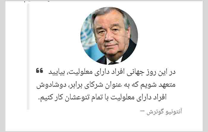روز جهانی افراد دارای معلولیت، فرصتی دوباره است تا با افتخار و احترام، اراده، توانایی و حضور الهامبخش میلیونها فرد دارای معلولیت را در جامعه